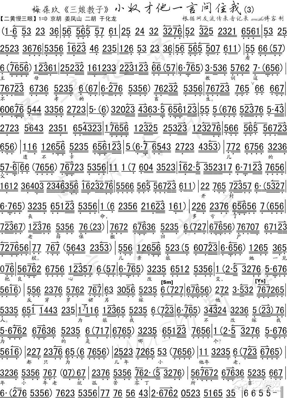 戏曲曲谱贤媳妇休得要泪流脸上2