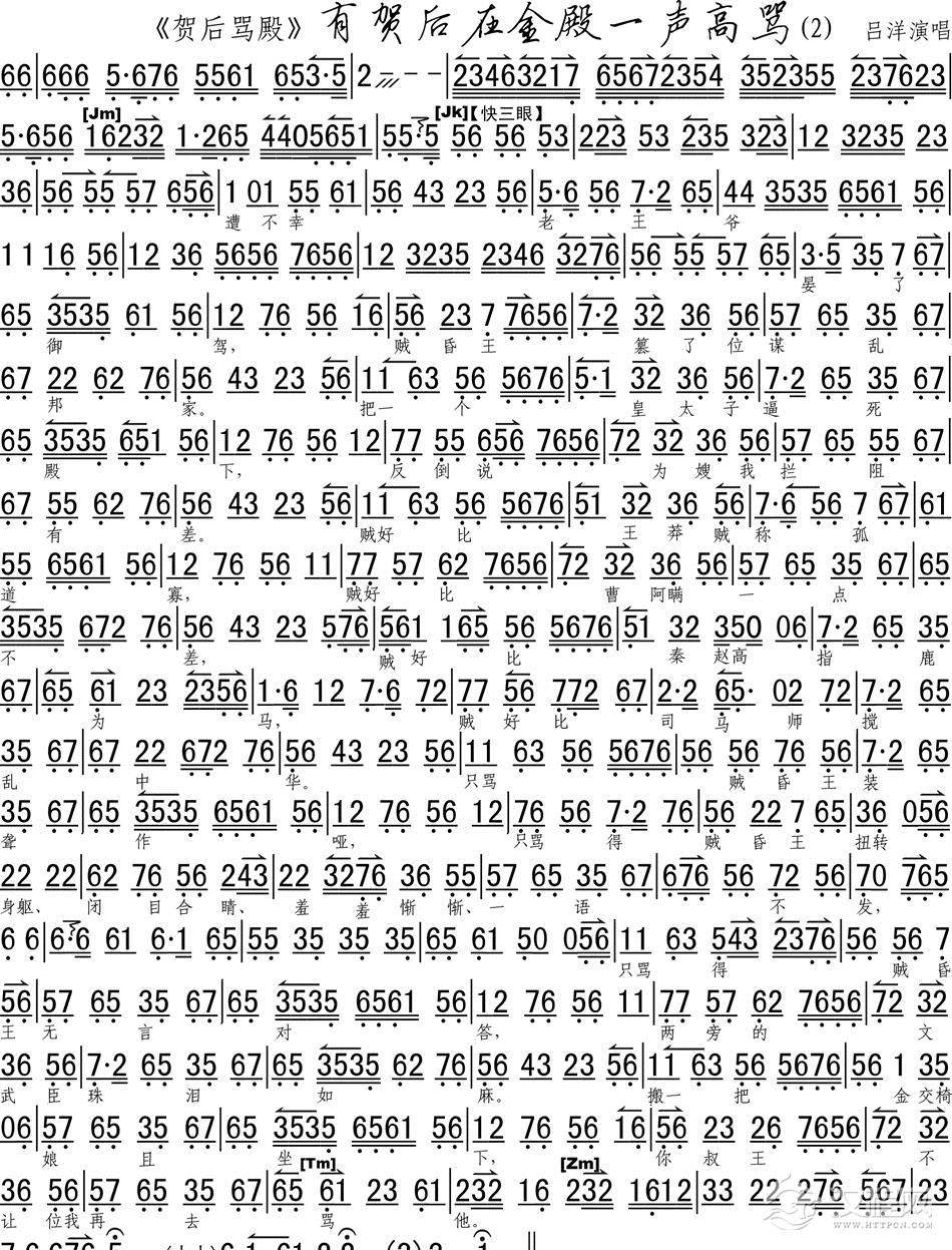 戏曲曲谱有贺后在金殿一声高骂1