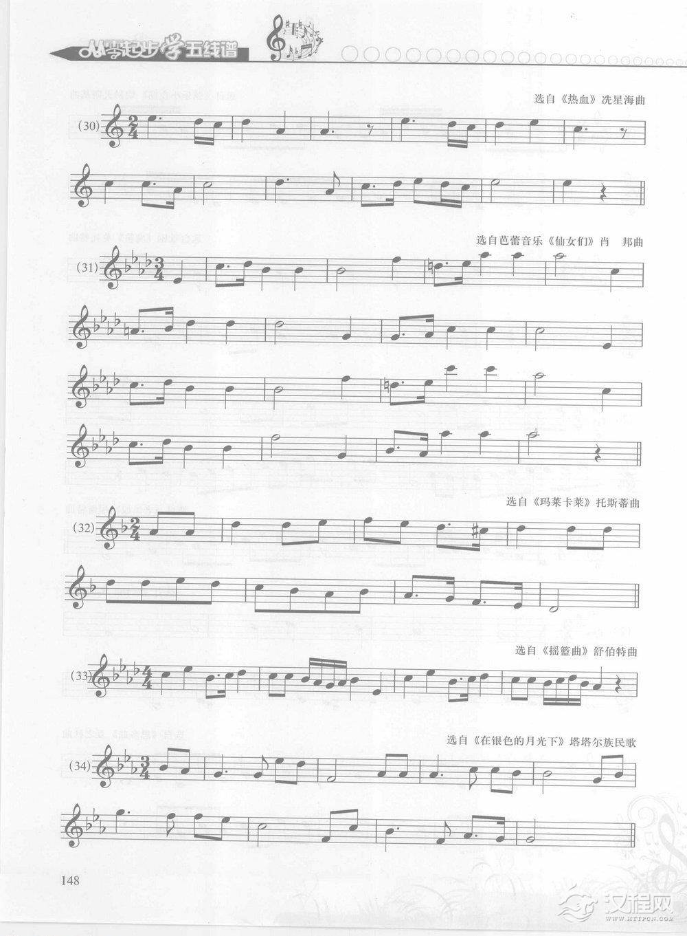 音乐知识五线谱练习乐曲精选《玛依位》