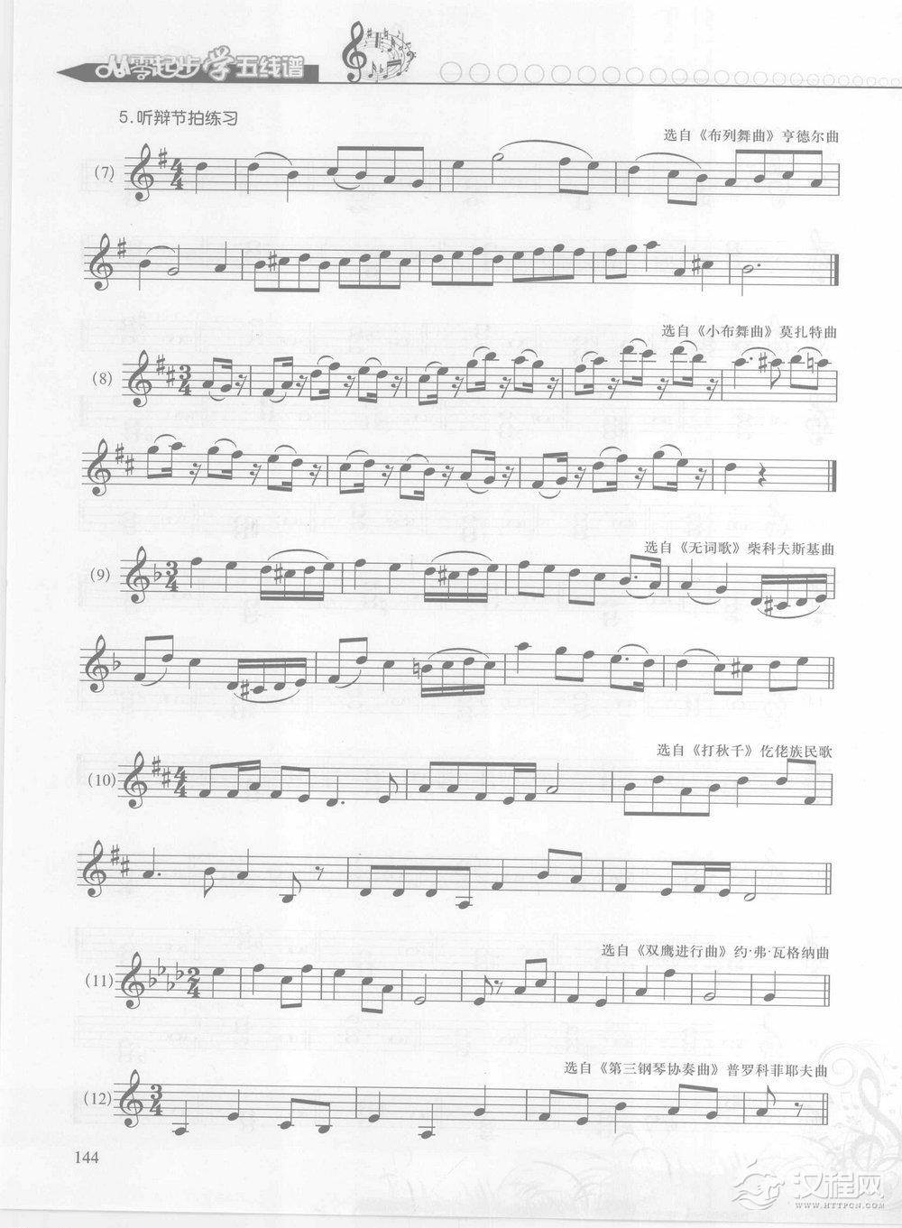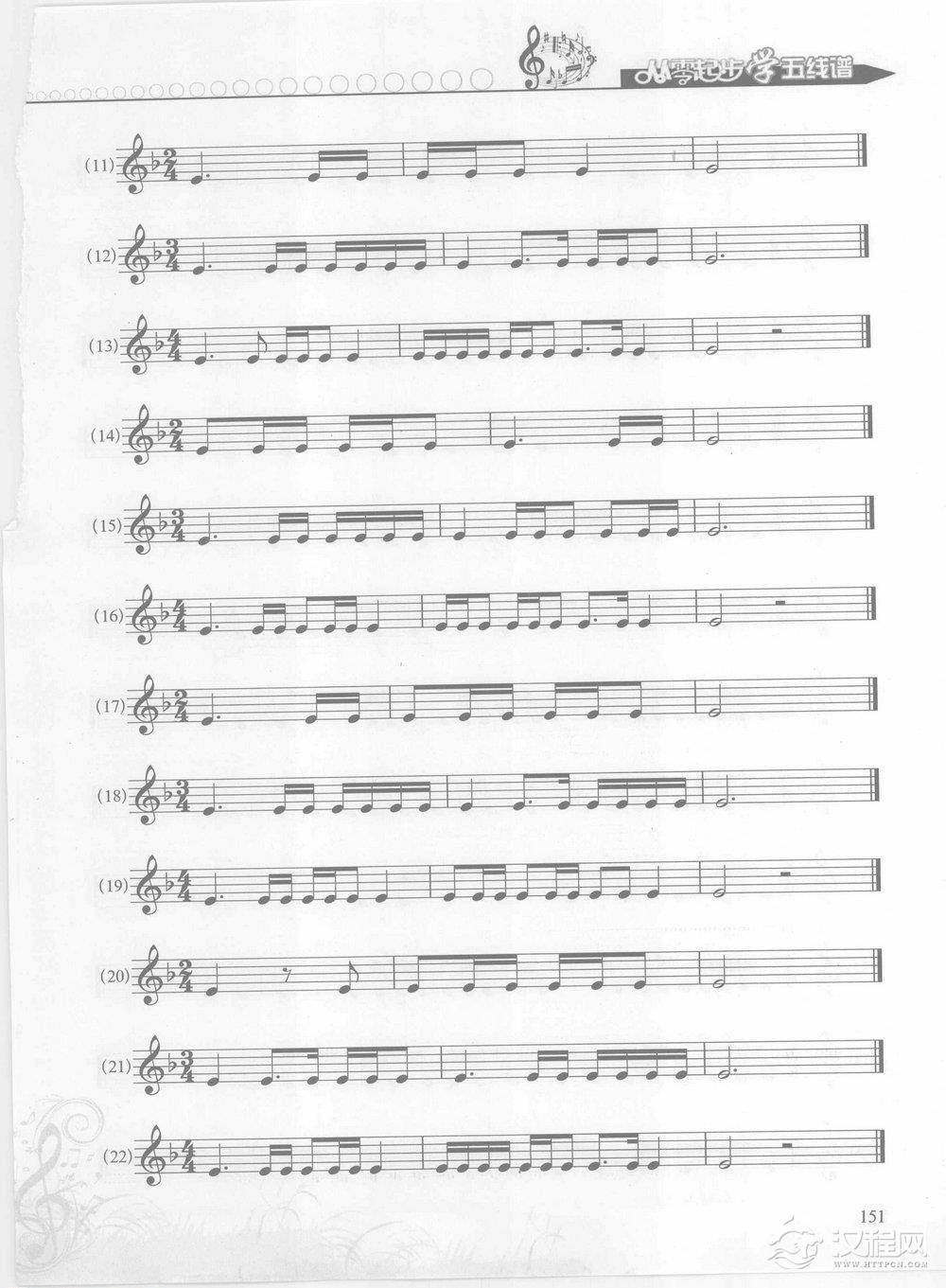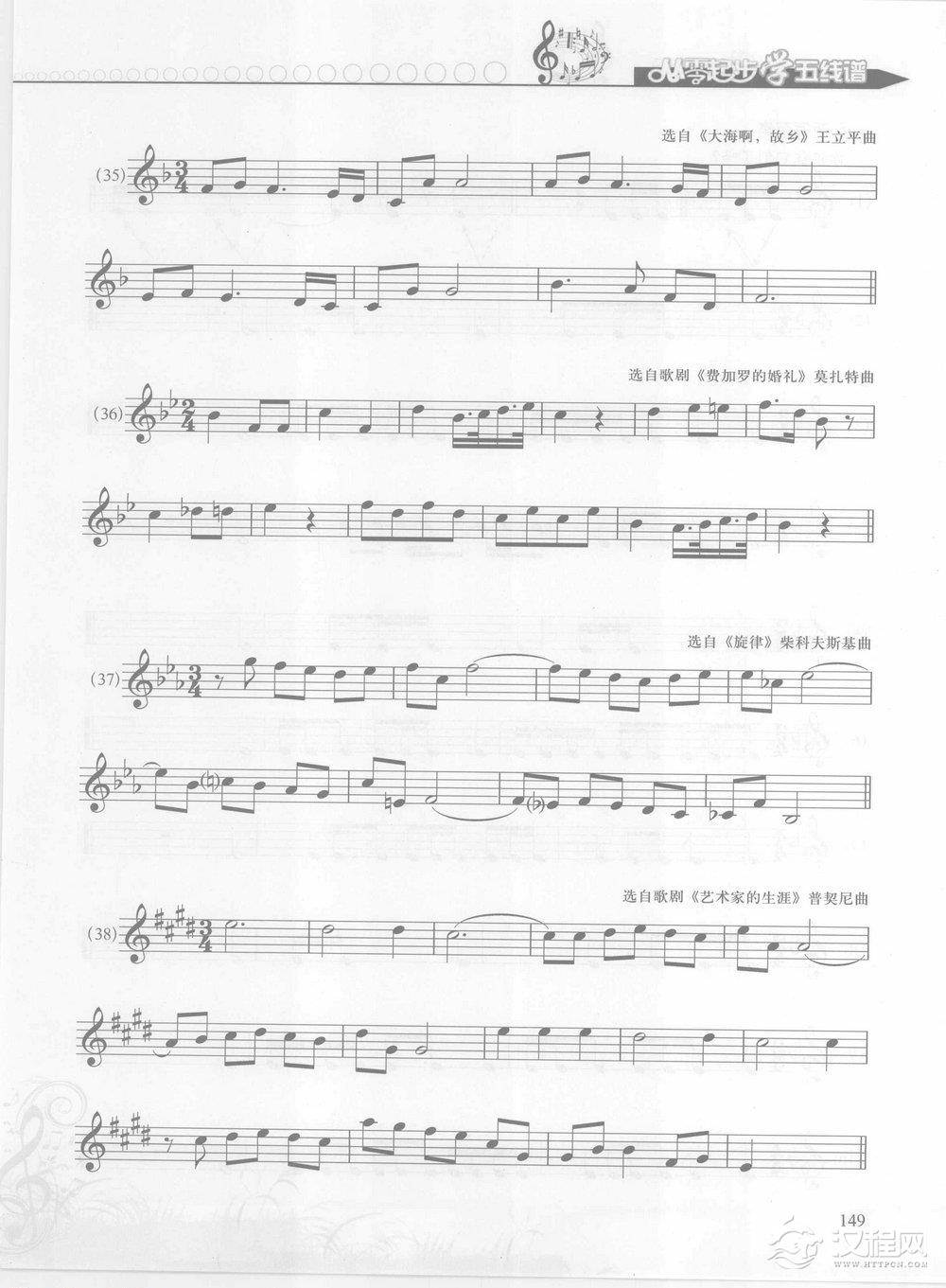 音乐知识五线谱基础教程 第五章 有关测试与练习 三级模拟训练【三、读一读】