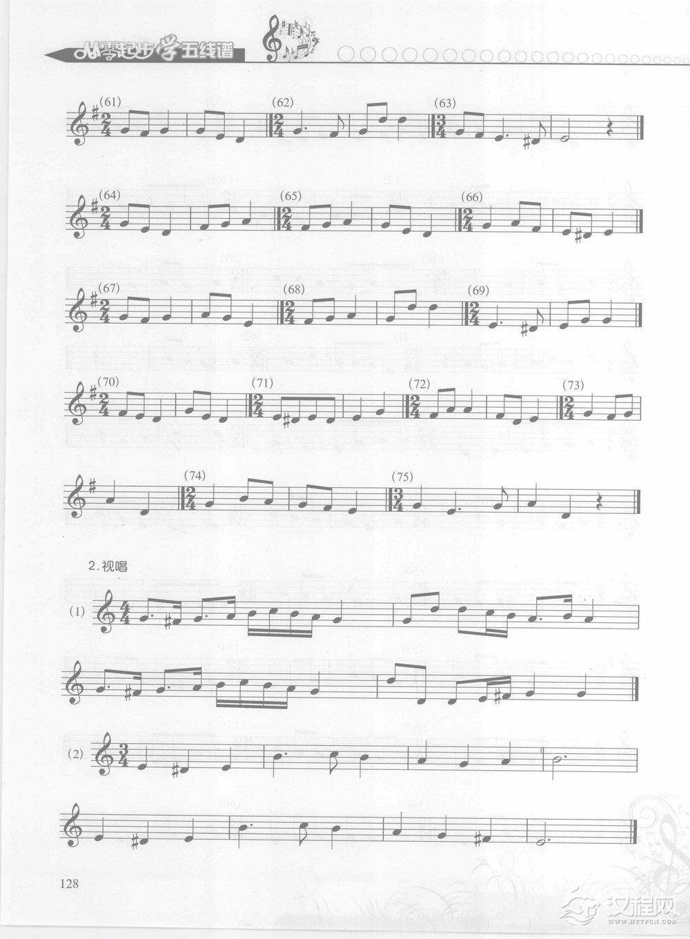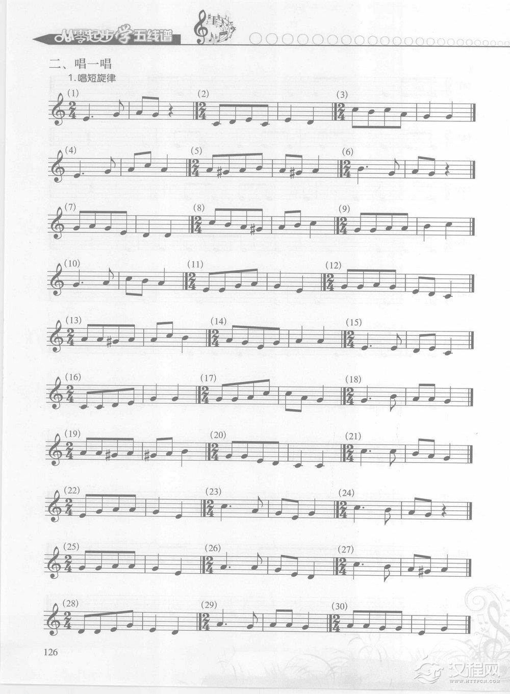 五线谱基础教程 第五章 有关测试与练习 二级模拟训练【二、唱一唱】