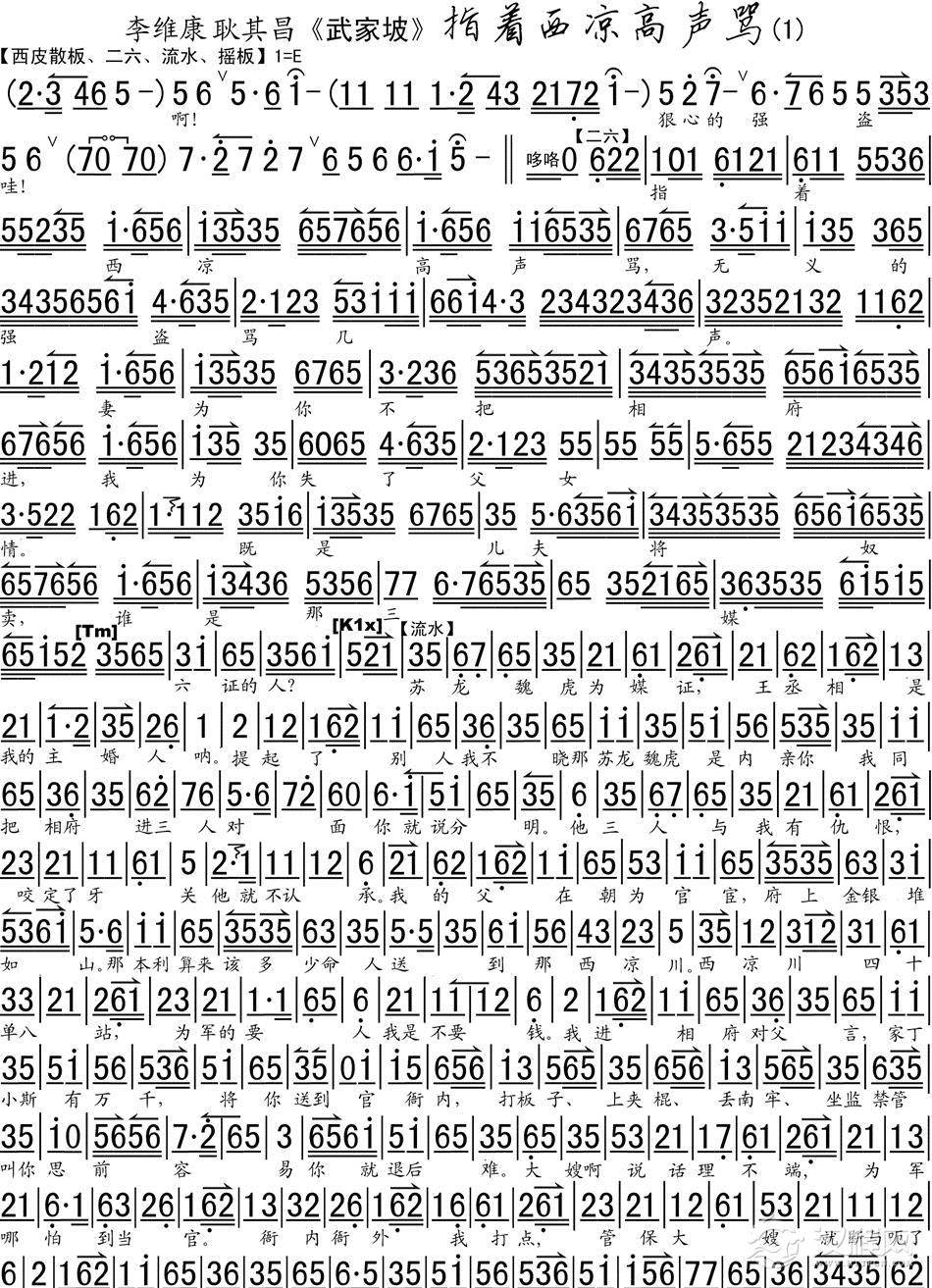 戏曲曲谱指着西凉高声骂2