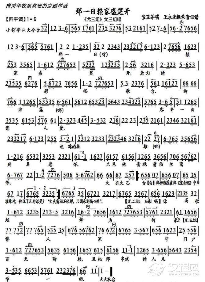 戏曲曲谱叹红颜薄命前生就