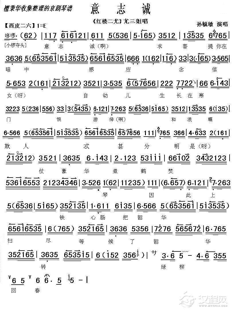 戏曲曲谱叹红颜薄命前生就