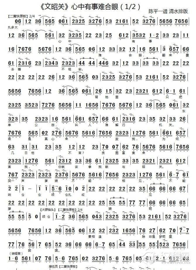 戏曲曲谱心中有事难合眼2