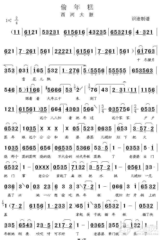 戏曲曲谱偷年糕(西河大鼓)