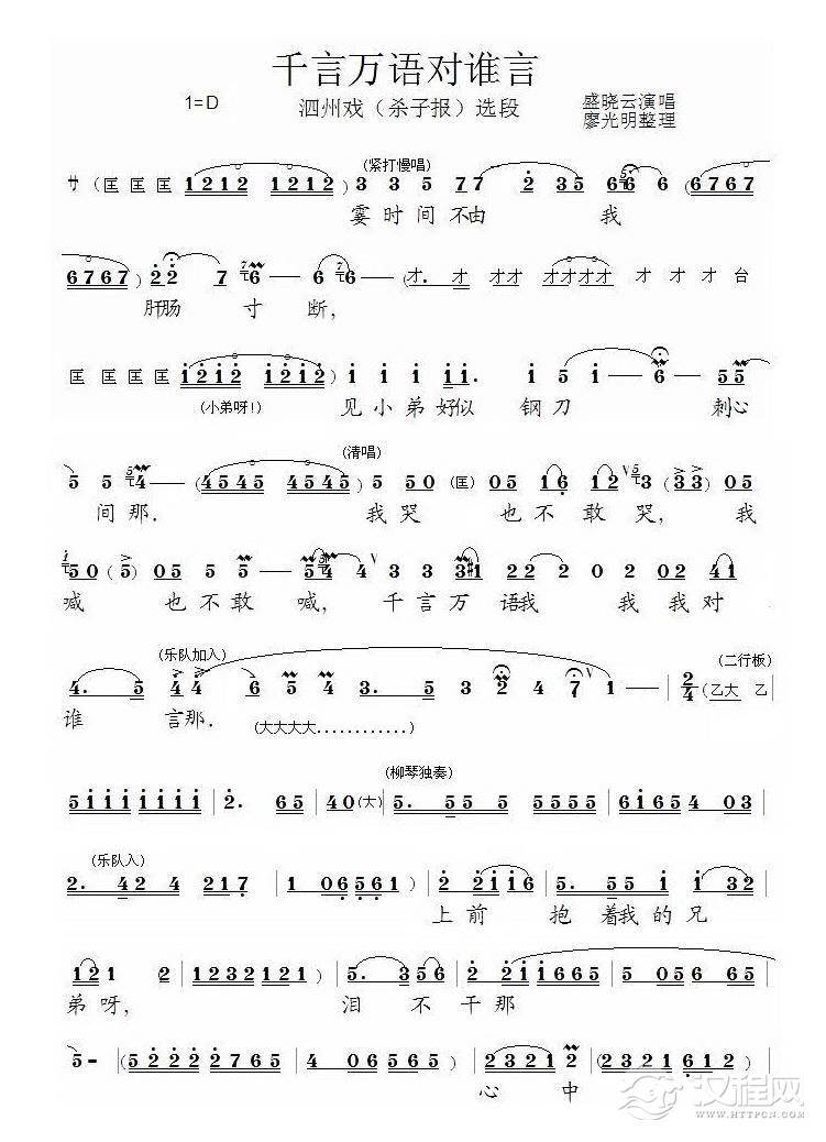 戏曲曲谱断肠人送断肠人(电影《女驸马》选曲、冯素珍、李兆廷唱段)