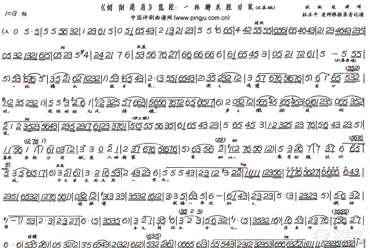 戏曲曲谱[泗州戏]杏花雨杨柳风(《金凤还巢》选段)