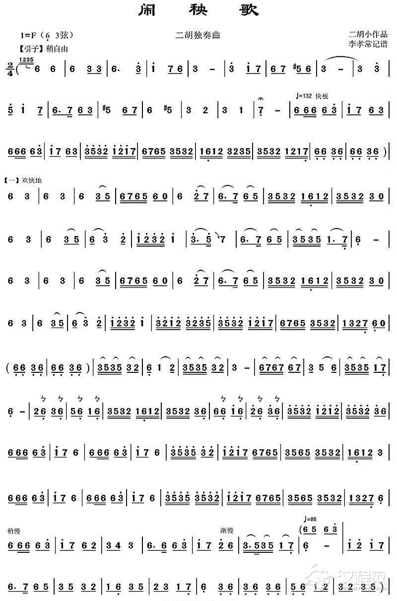 曲谱大全二人转开场曲《流畅》(板胡合成谱)