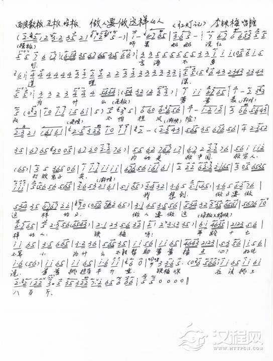 戏曲曲谱红灯记 无产者一生奋战求解放 李玉和唱段(手抄本)