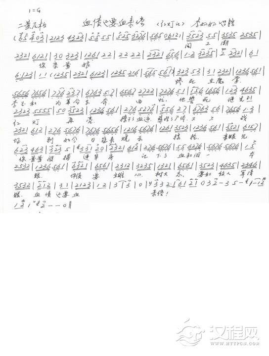 戏曲曲谱红灯记 转眼间十七年 李奶奶唱段(手抄本)