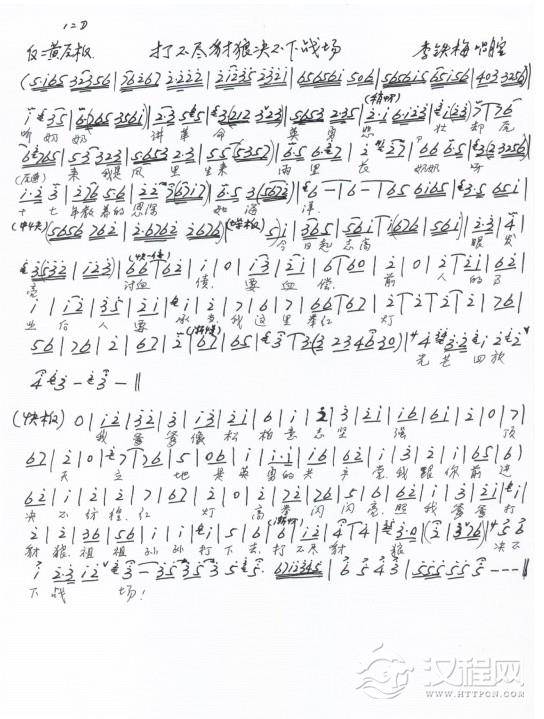 戏曲曲谱红灯记 光辉照儿永向前 李铁梅唱段(手抄本)