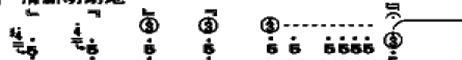 (1)大颤、滑颤、小颤:大颤演奏符号“ ”颤幅较大,一般超过一个小二度,大颤包括按颤如“fa、su”两音的演奏,滑颤即在下滑过程加颤,其音程为小二度、大二度和小三度,空颤如“re、mi、la”三音上不加按任何弦数的颤音演奏。“re”音奏出大二度的混合音响。“mi、la”两音均奏出小三度的混合音响,三个颤音演奏时右手拨弦后,左手立即吟弦,在触弦的开始有一个爆发力。小颤细密紧促,利用左臂肌肉暂时紧张形成的抖动,如:73、74小节