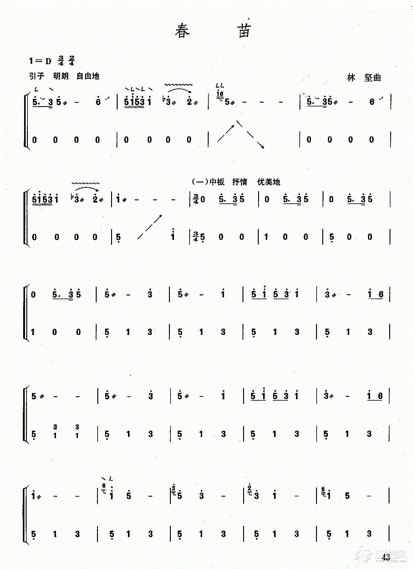 曲谱大全高音板胡曲谱《春到浏阳河》简谱