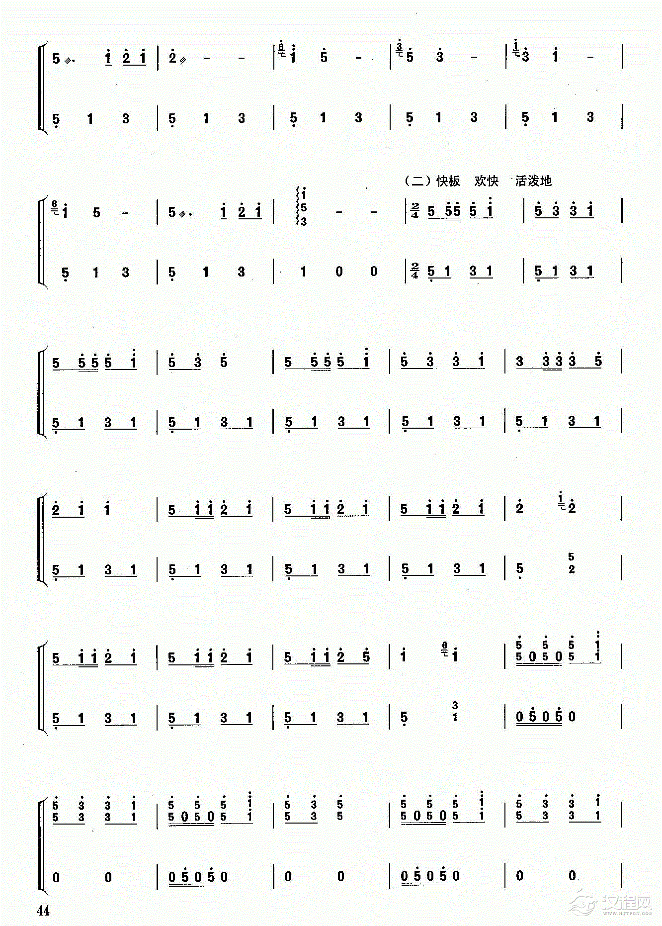 曲谱大全高音板胡曲谱《快乐的驭手》扬琴伴奏谱