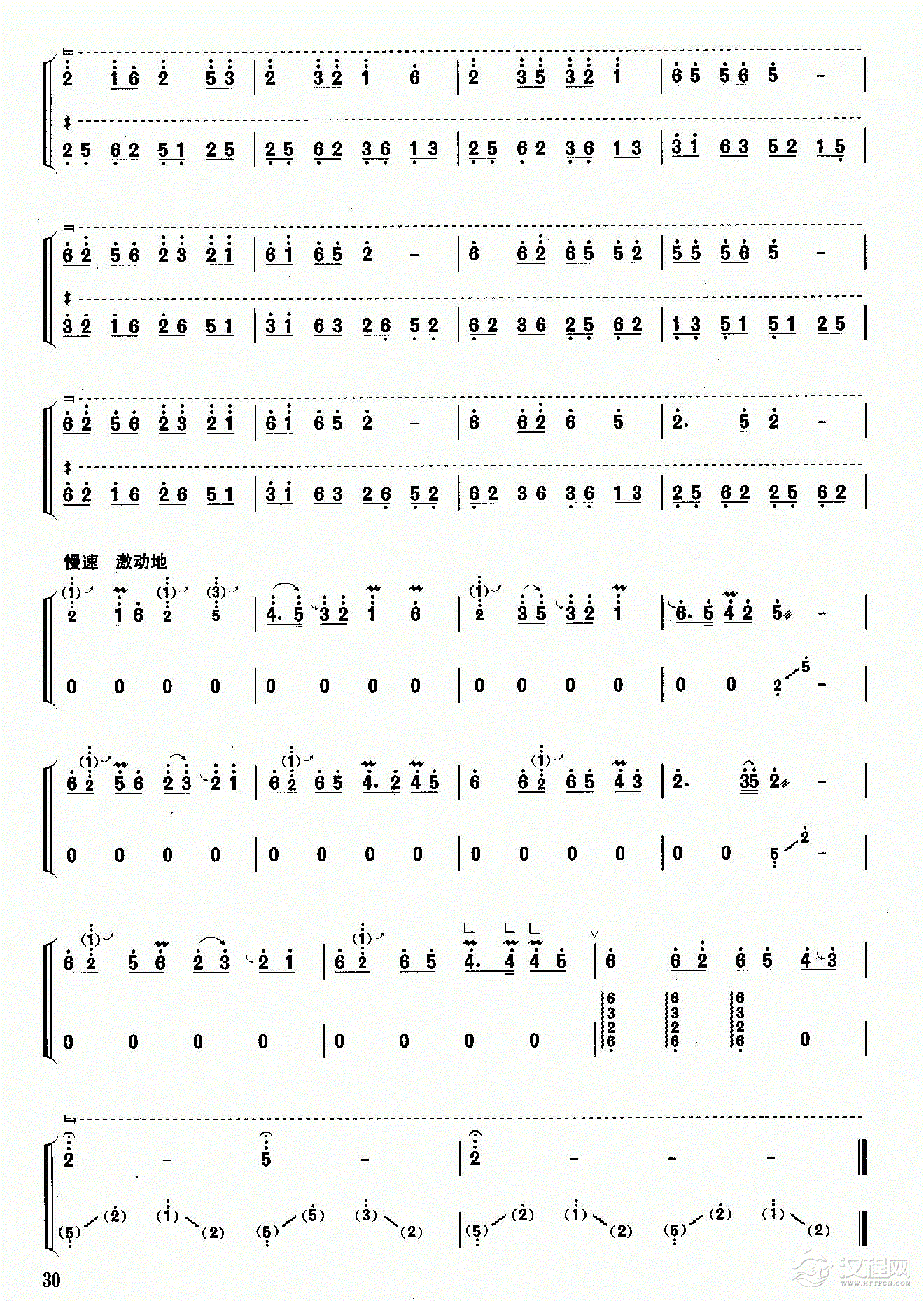 曲谱大全高音板胡曲谱《山乡欢歌》扬琴伴奏谱
