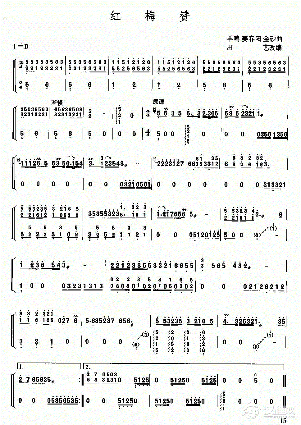 曲谱大全高音板胡曲谱《庆翻身》扬琴伴奏谱
