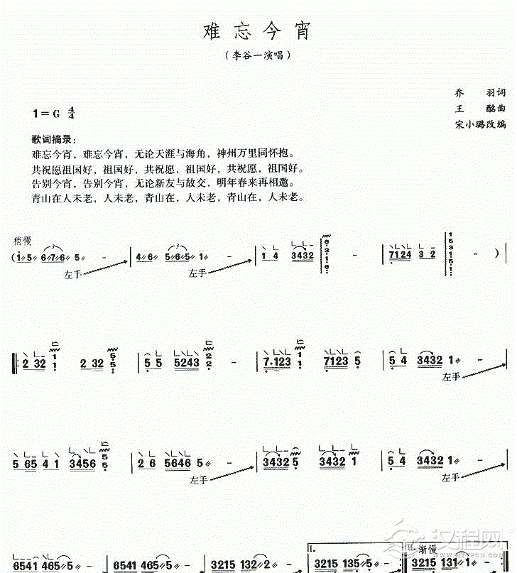 古筝歌谱【难忘今宵】