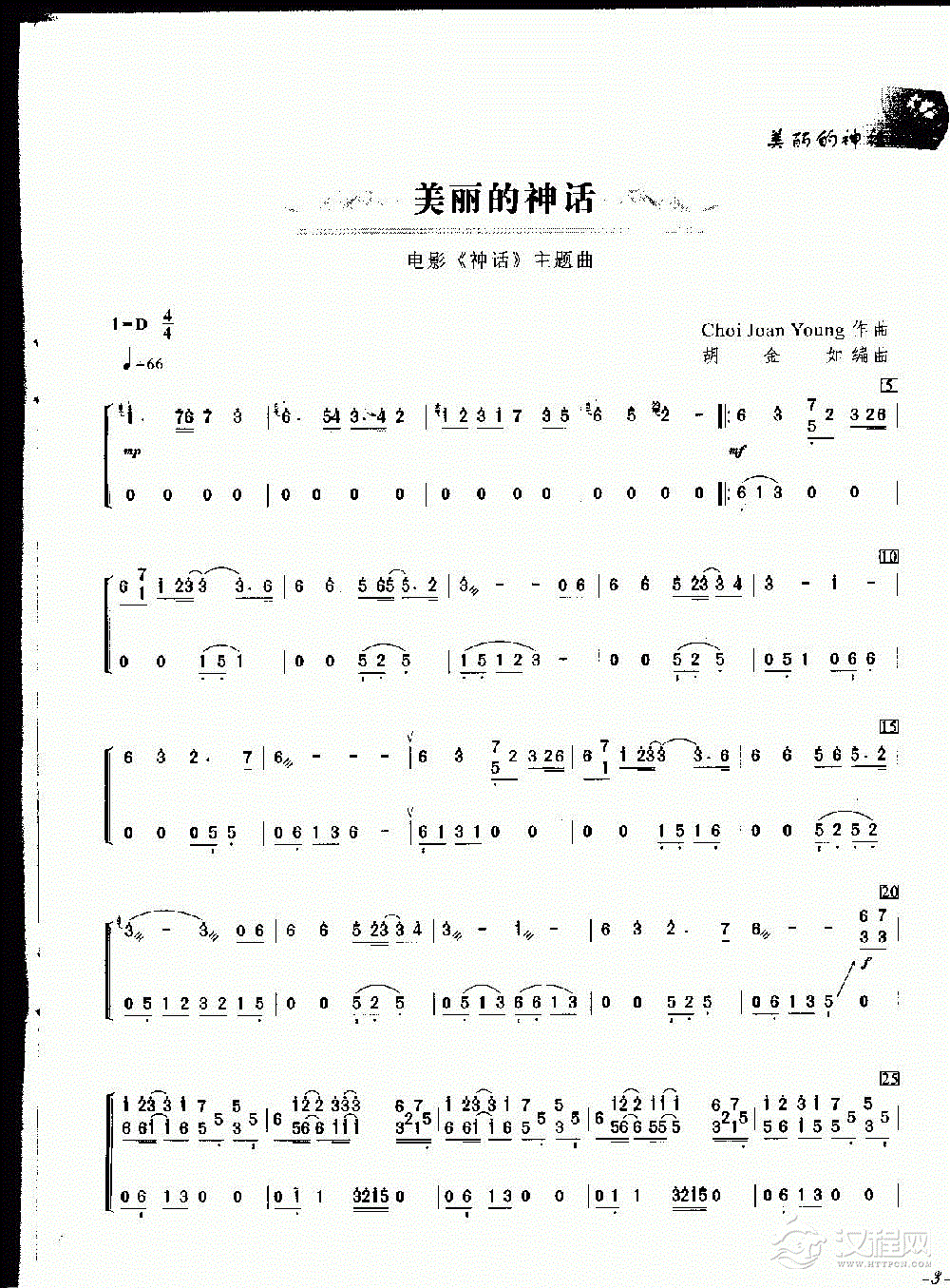 古筝歌谱【美丽的神话】高清
