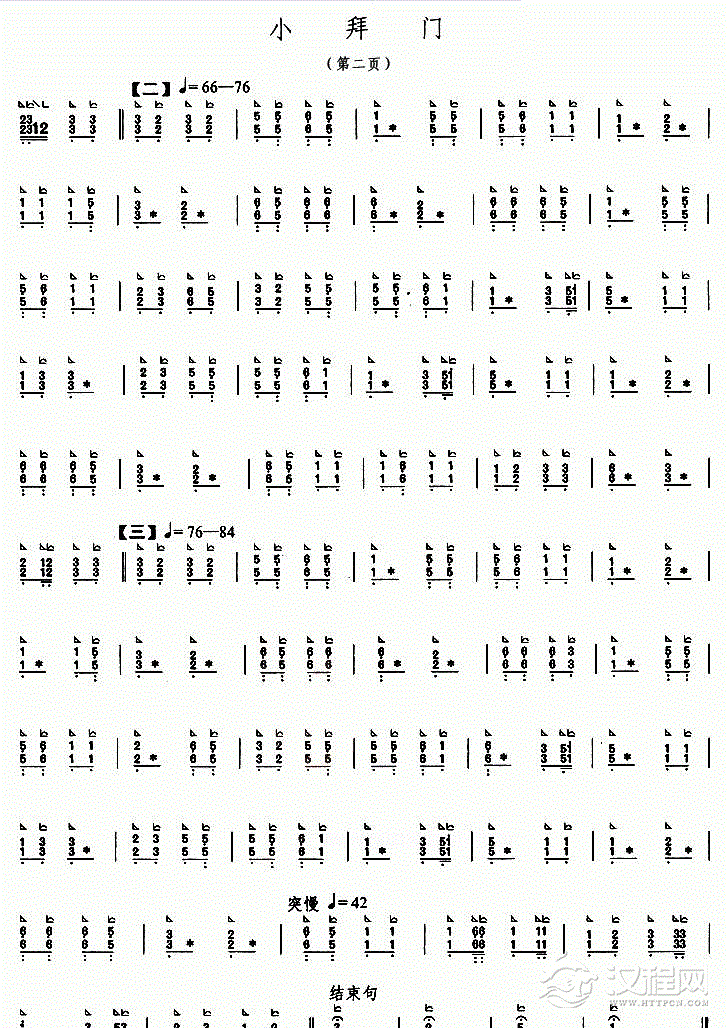 古筝歌谱【小拜门】