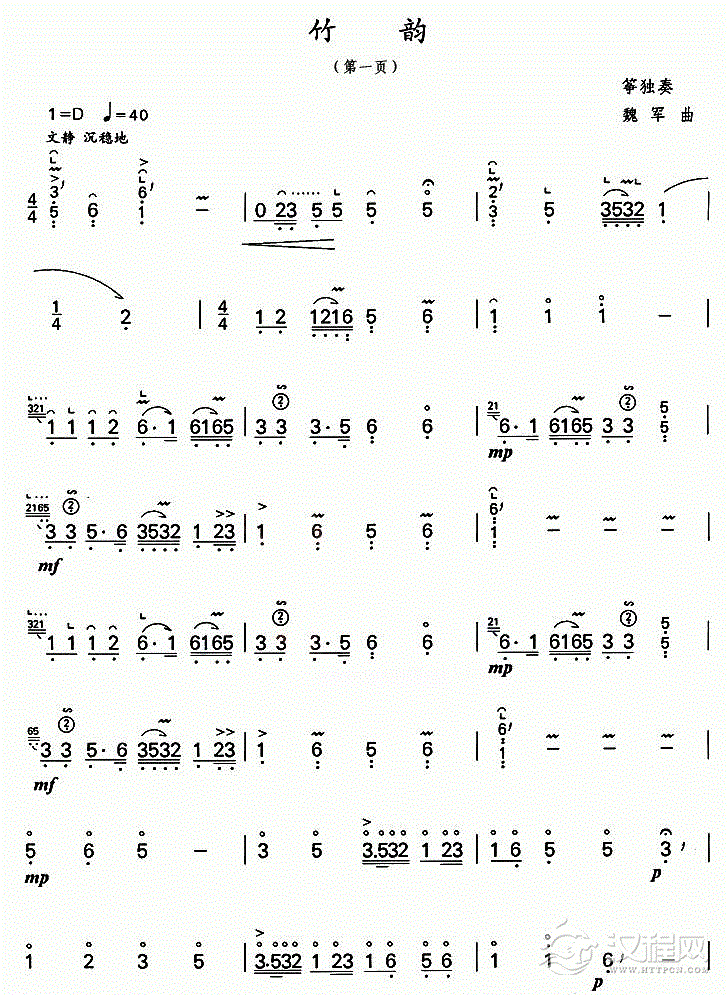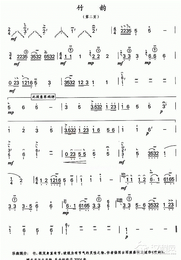 曲谱大全古筝歌谱【汉江韵】五线谱