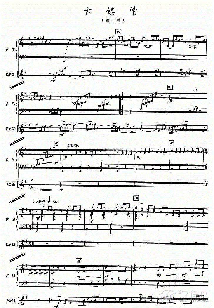 流水、石桥、翠竹、矮搂,古镇依然魅力十足,充满活力。清淡委婉,朴实无华的音调抒发了作曲家对家乡的眷恋和热爱之情。