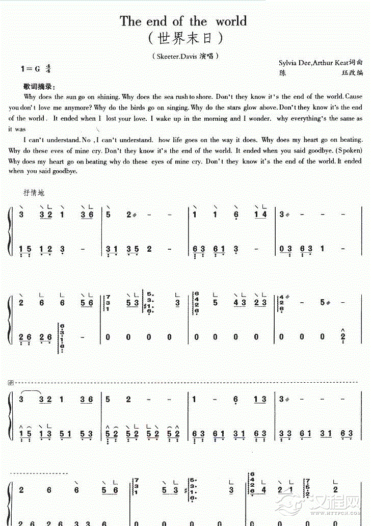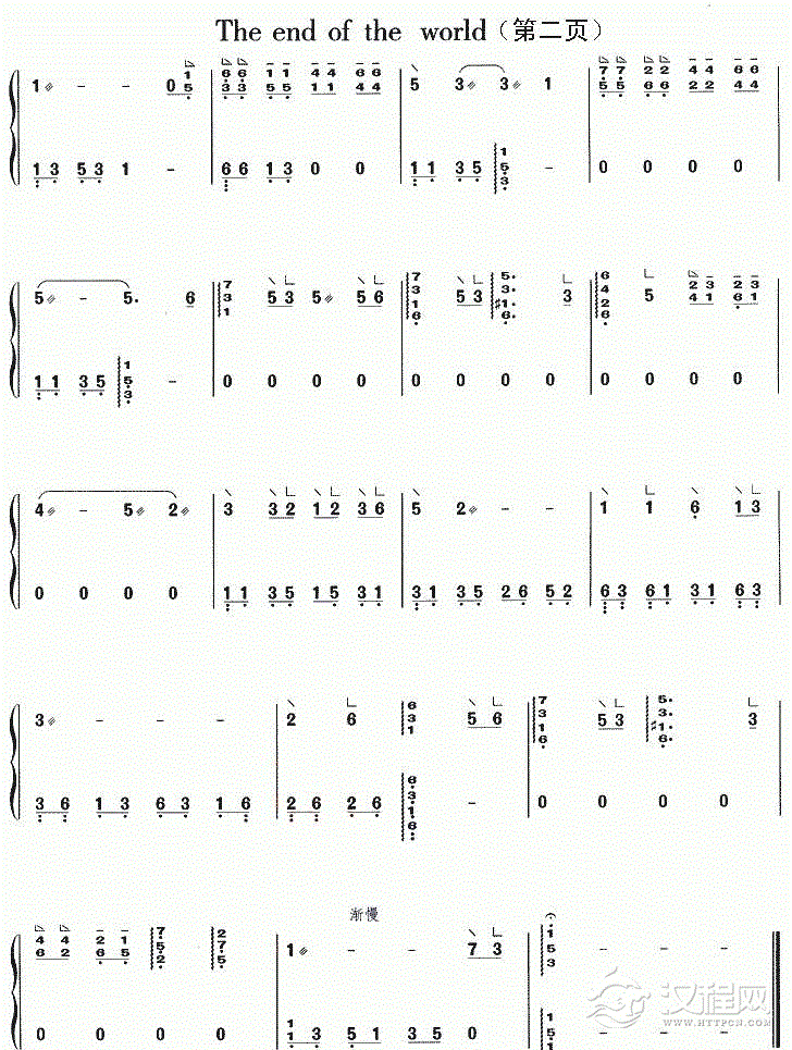 古筝曲【世界末日 The end of the world】简谱
