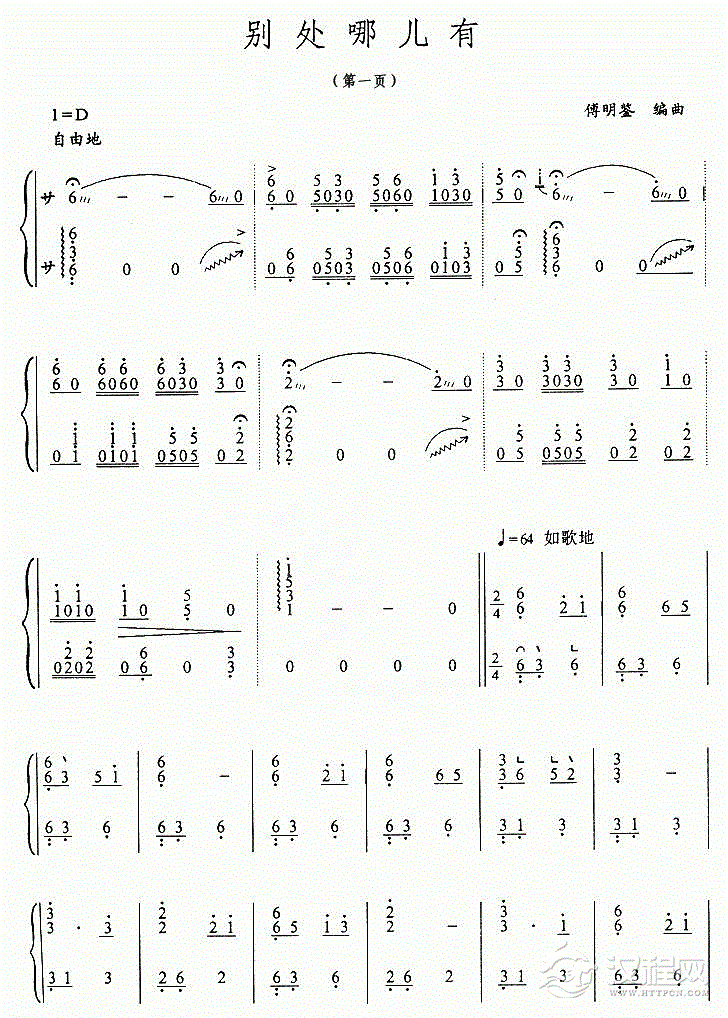 曲谱大全巴乌通俗乐曲《驿动的心》梁弘志曲