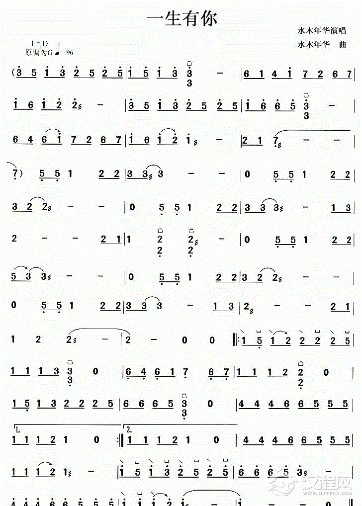 古筝谱【一生有你】