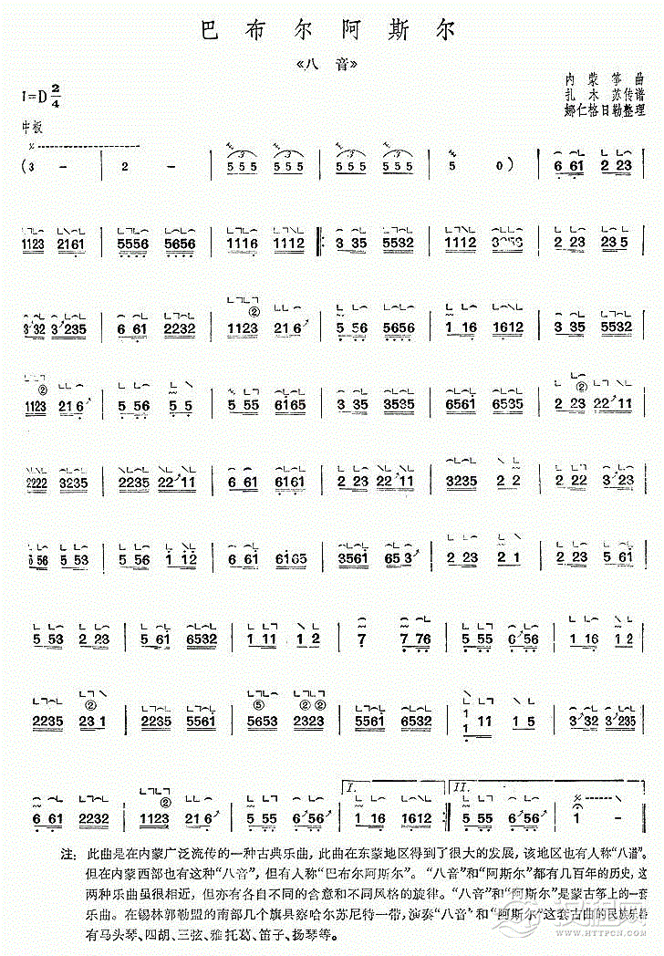 古筝谱【巴布尔阿斯尔】