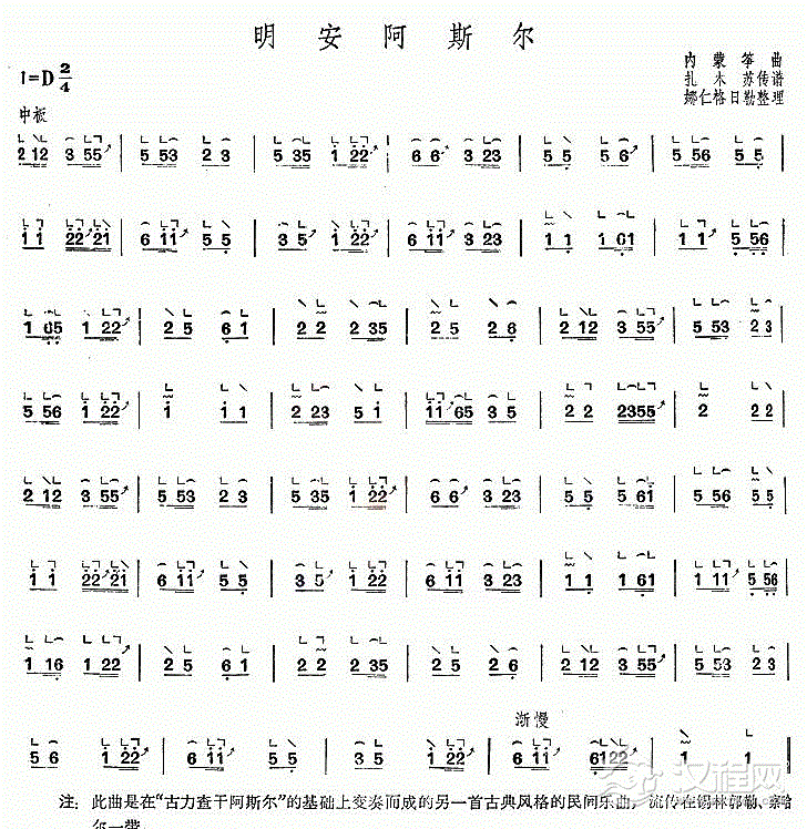 古筝谱【明安阿斯尔】
