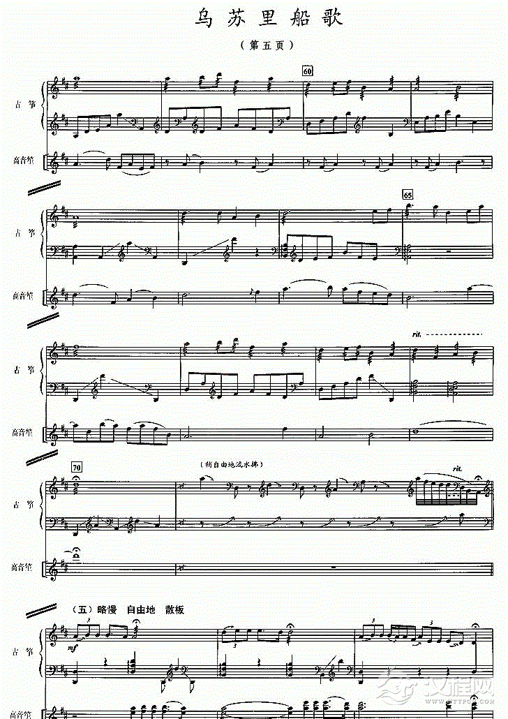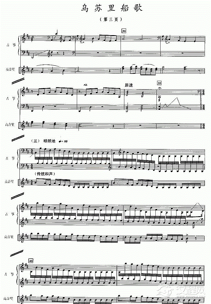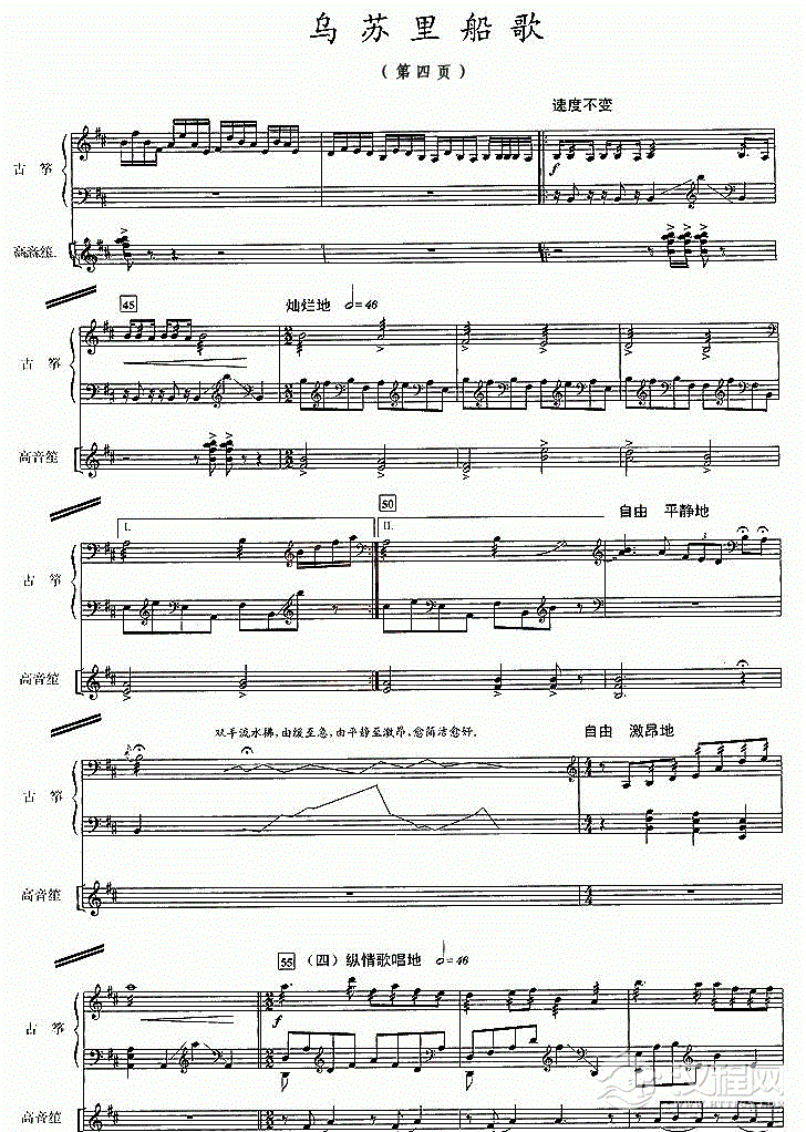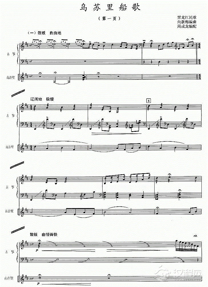 古筝谱【乌苏里船歌】