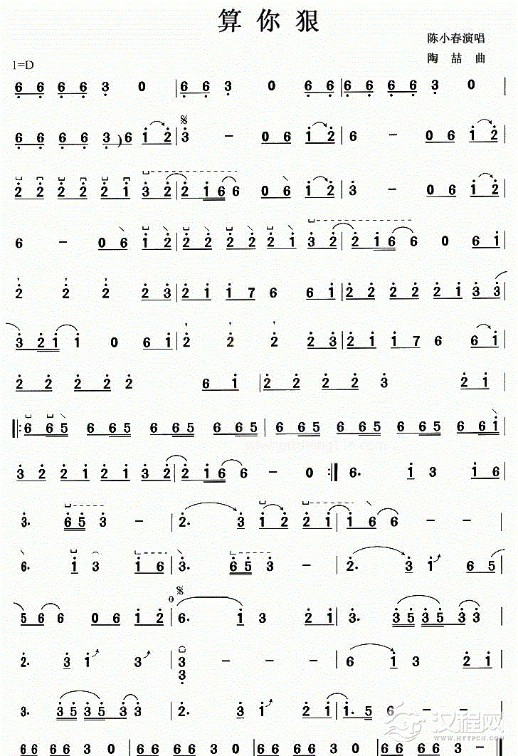 古筝谱【算你狠】
