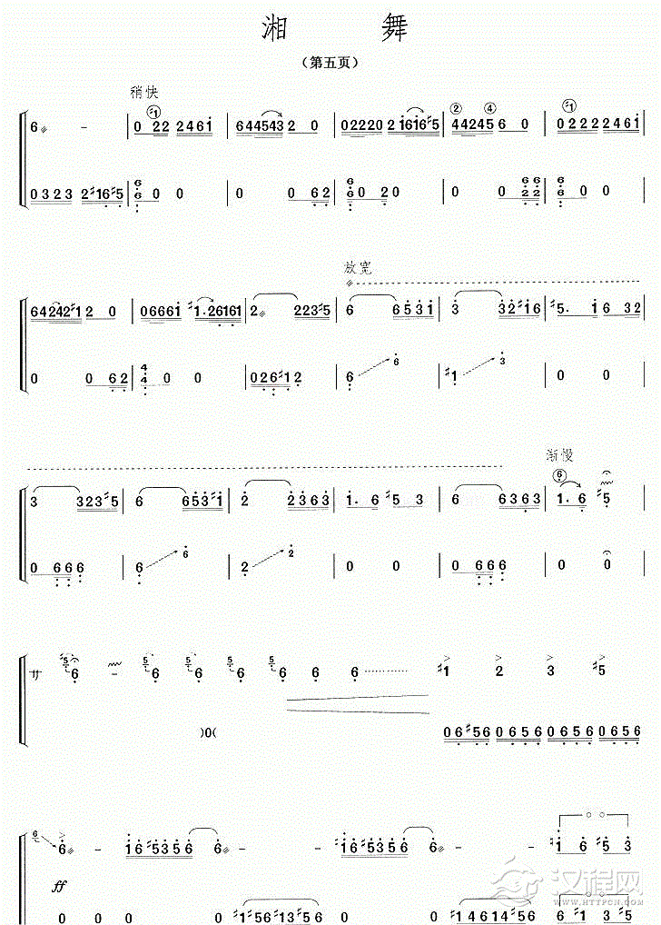此曲作于1996年6月,以湖南花鼓戏音调作为素材。独特的调式风格和同音变化的色彩对比,通过精心设计的排弦得以较完美地体现与表达。乐曲似一幅浓郁的湖南民间风俗画。