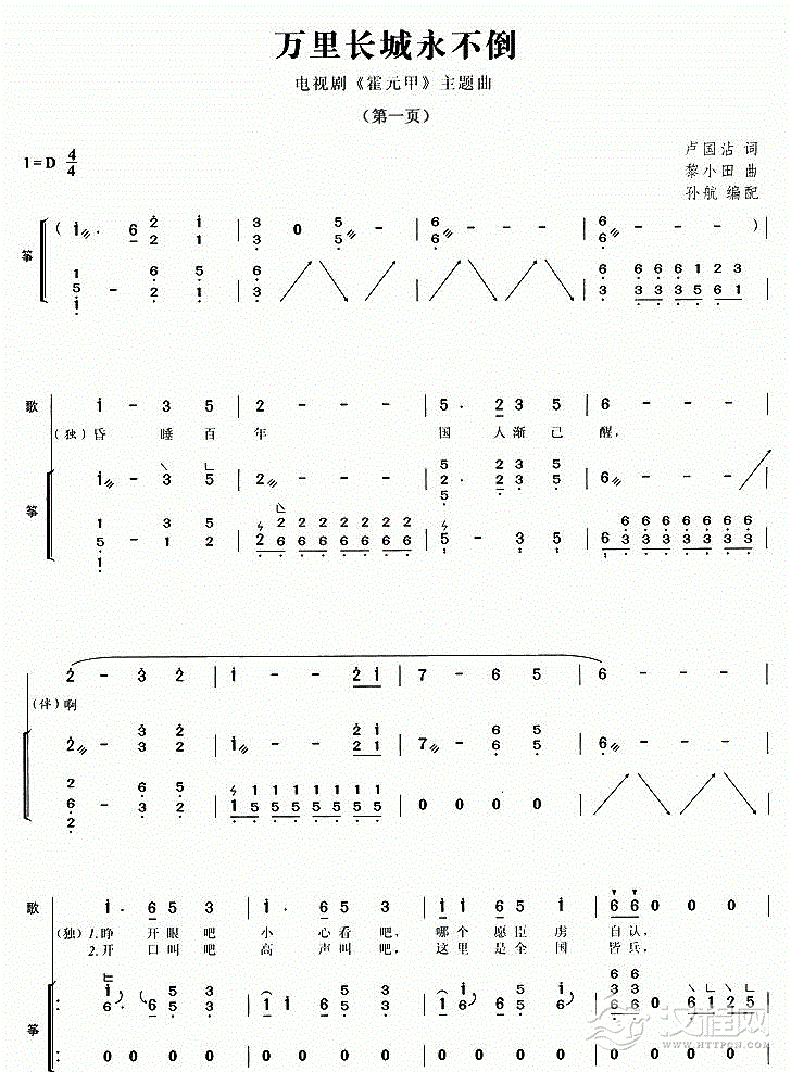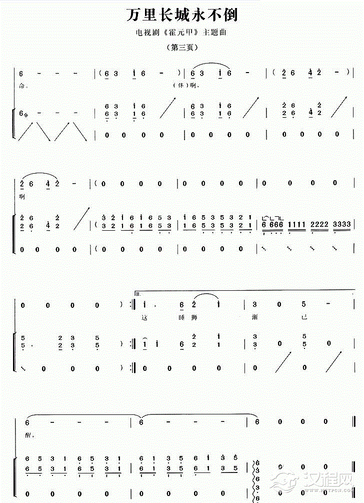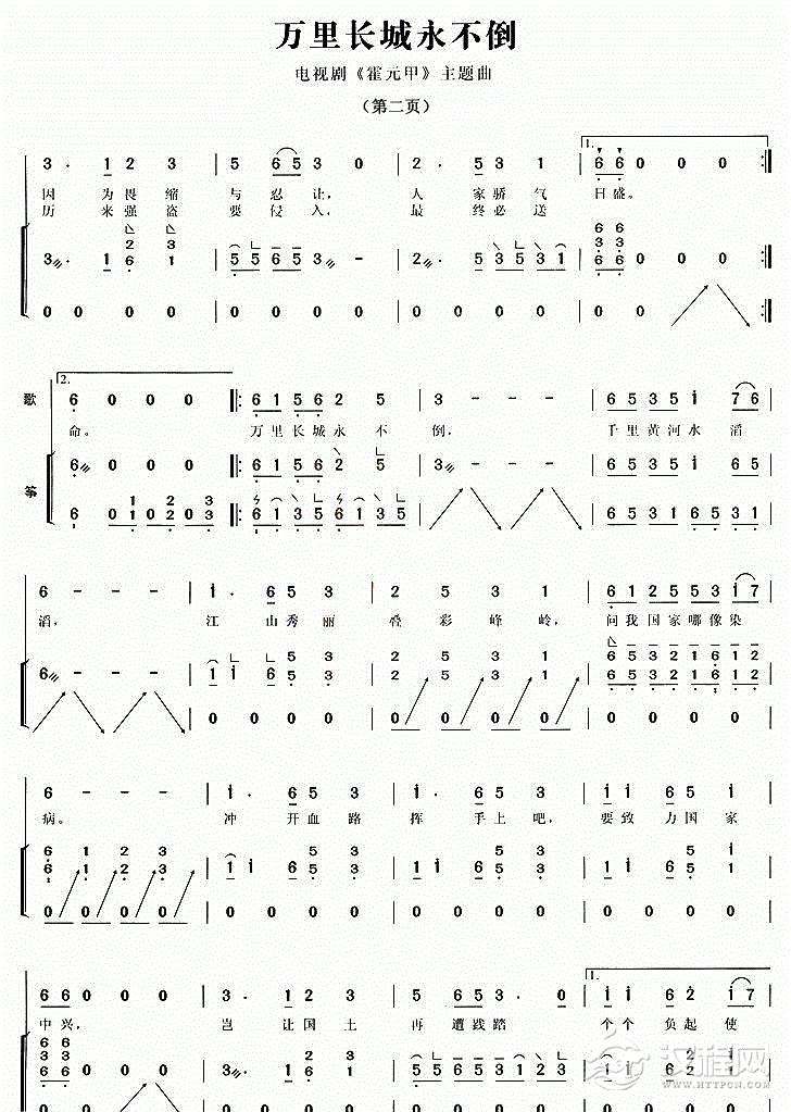 古筝谱【万里长城永不倒】