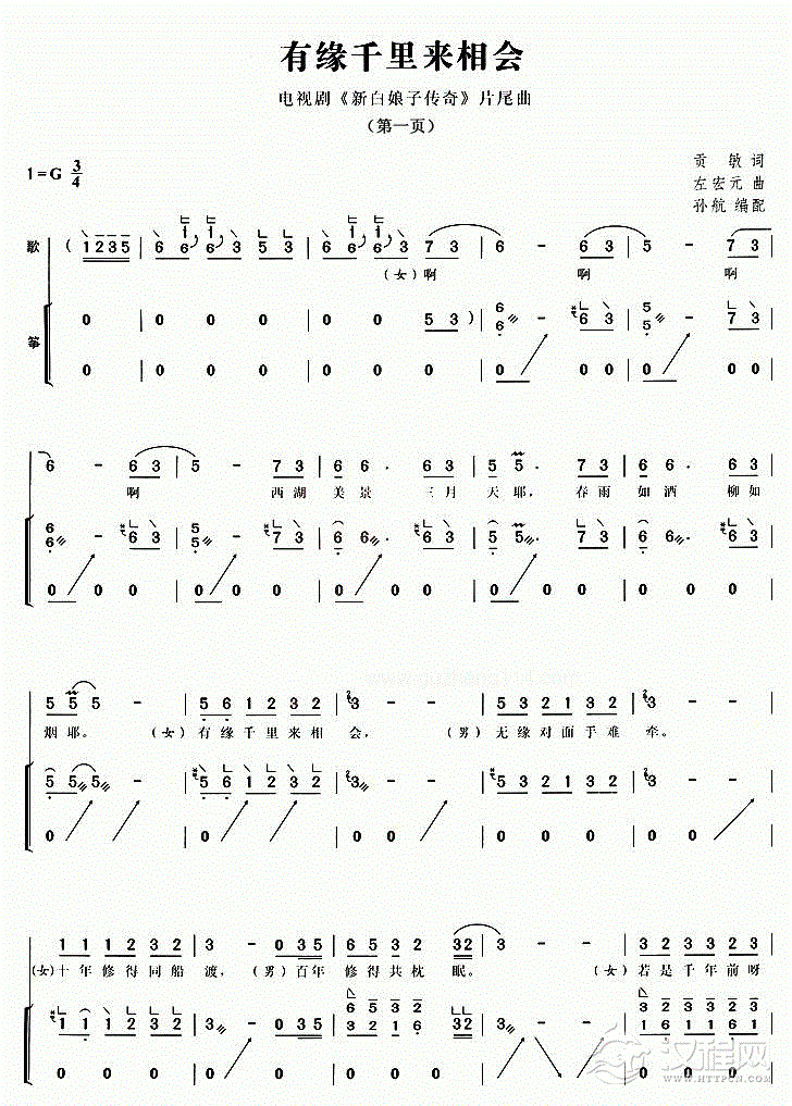 古筝谱【有缘千里来相会】