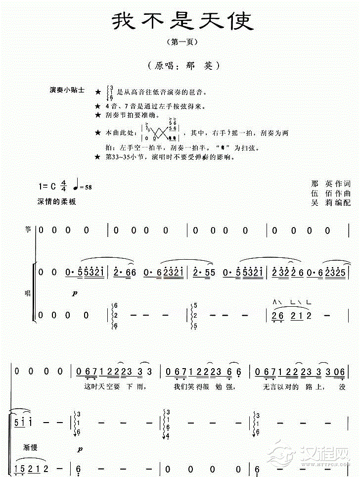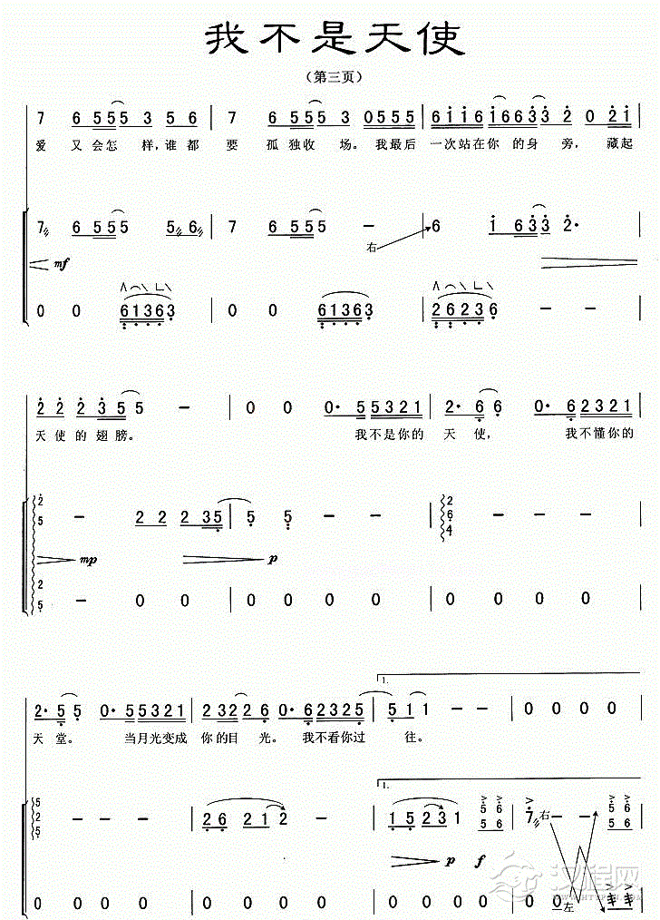 古筝谱【我不是天使】