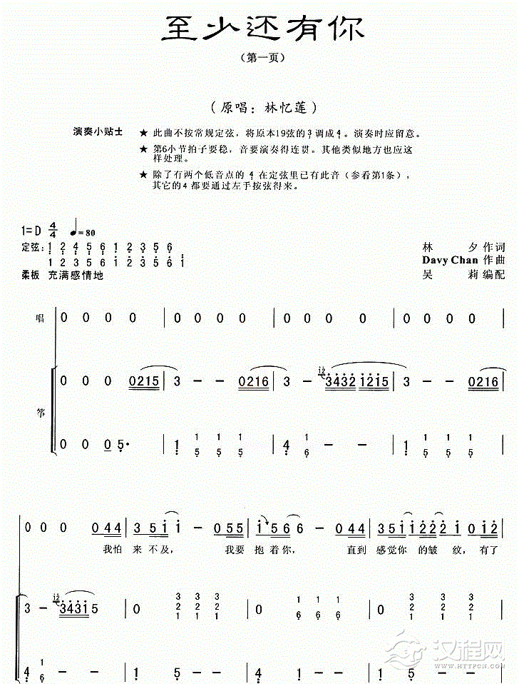 古筝谱【至少还有你】