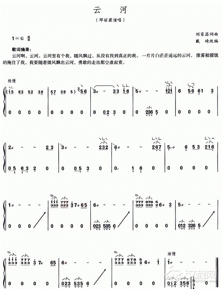古筝谱《彩云追月》