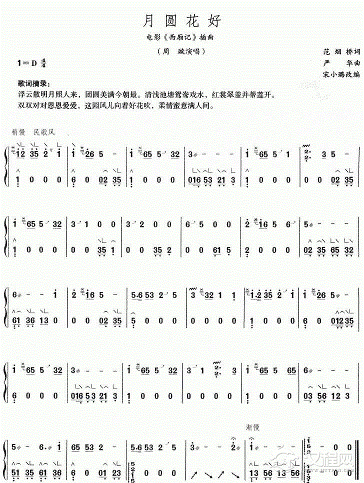 曲谱大全笛子演奏通俗歌曲谱之:边疆的泉水清又纯