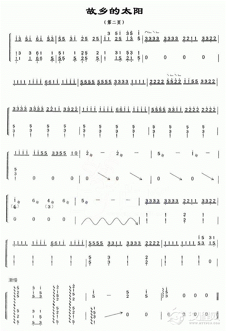 古筝谱【故乡的太阳】
