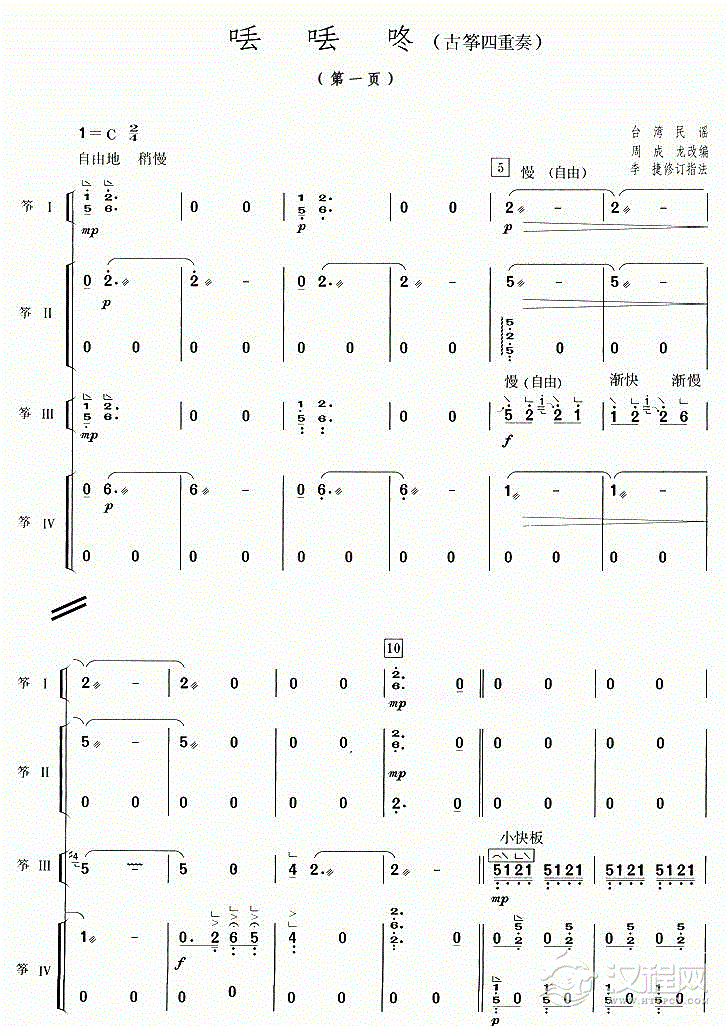 曲谱大全古筝谱【虎跑听泉】