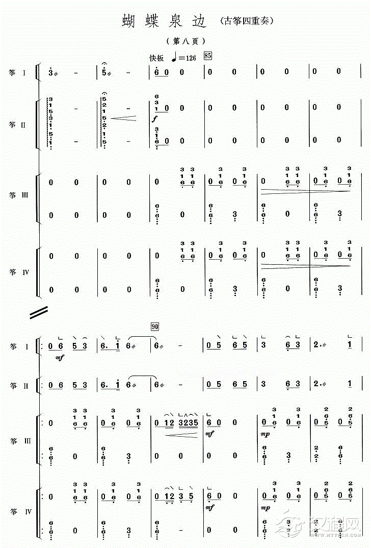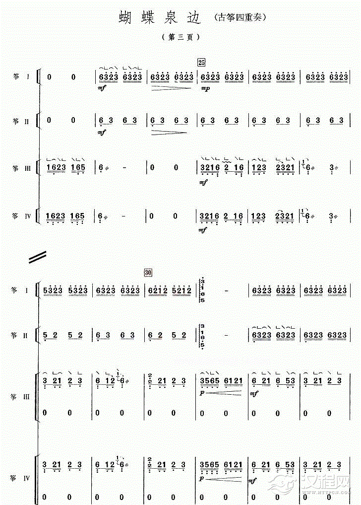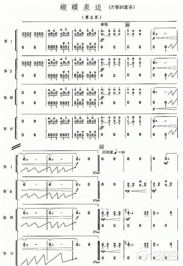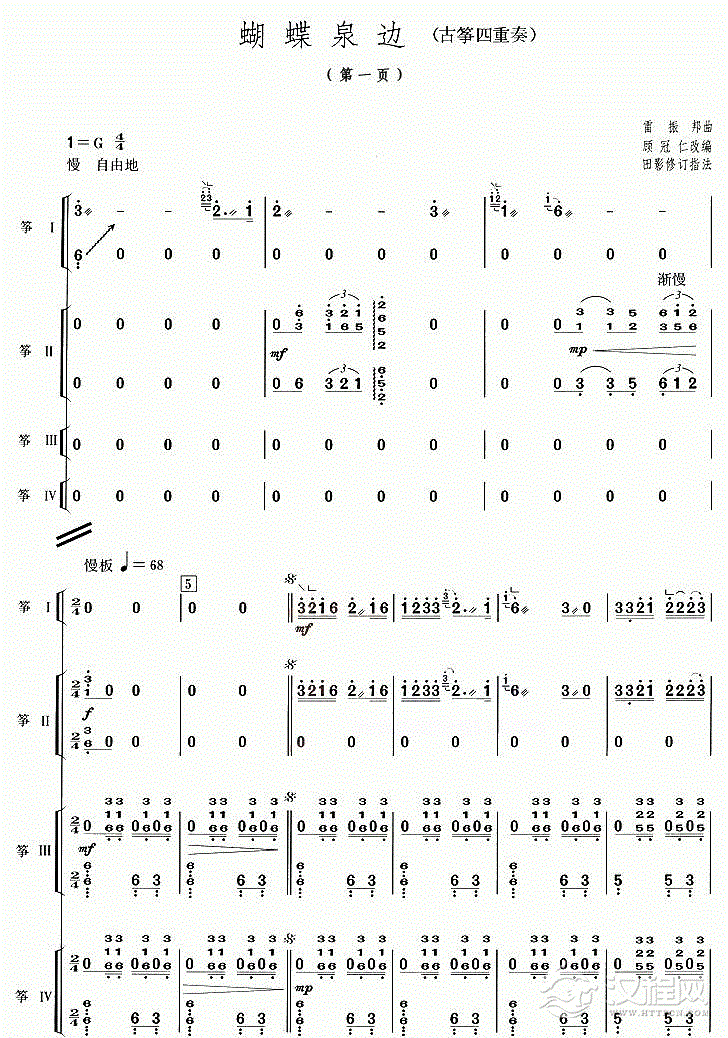 曲谱大全古筝谱【虎跑听泉】五线谱