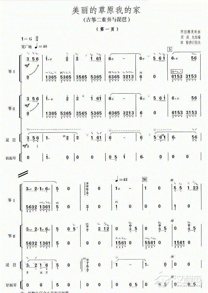 曲谱大全古筝谱【芦笙恋歌】