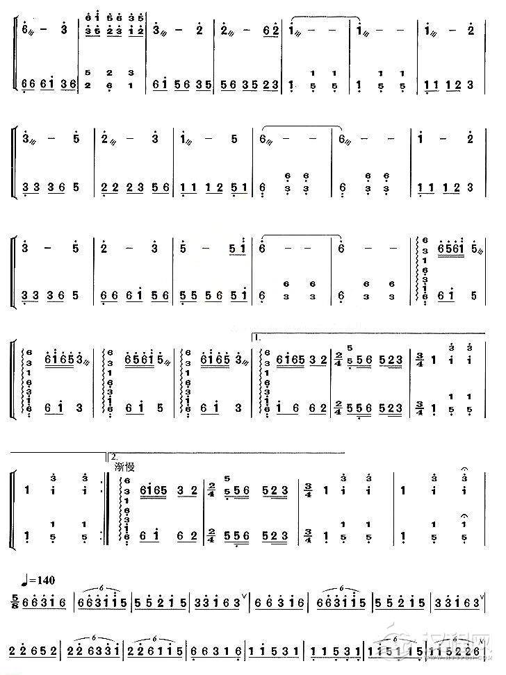 曲谱大全流行竹笛歌谱之:两只蝴蝶