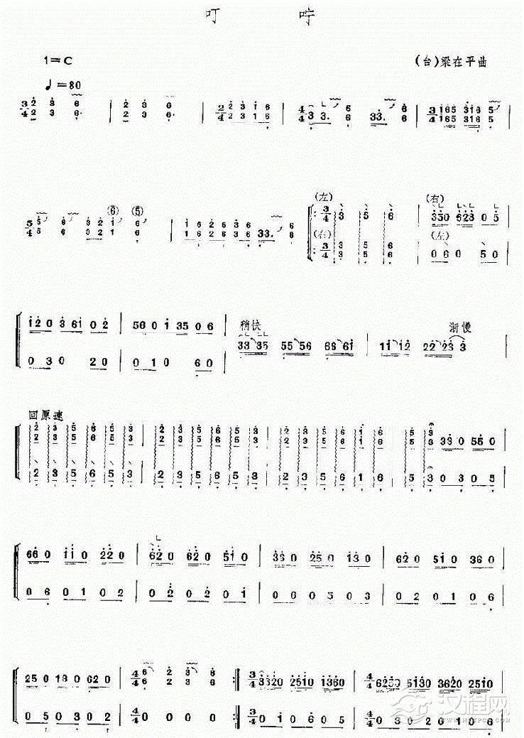 曲谱大全古筝曲谱【月亮代表我的心】
