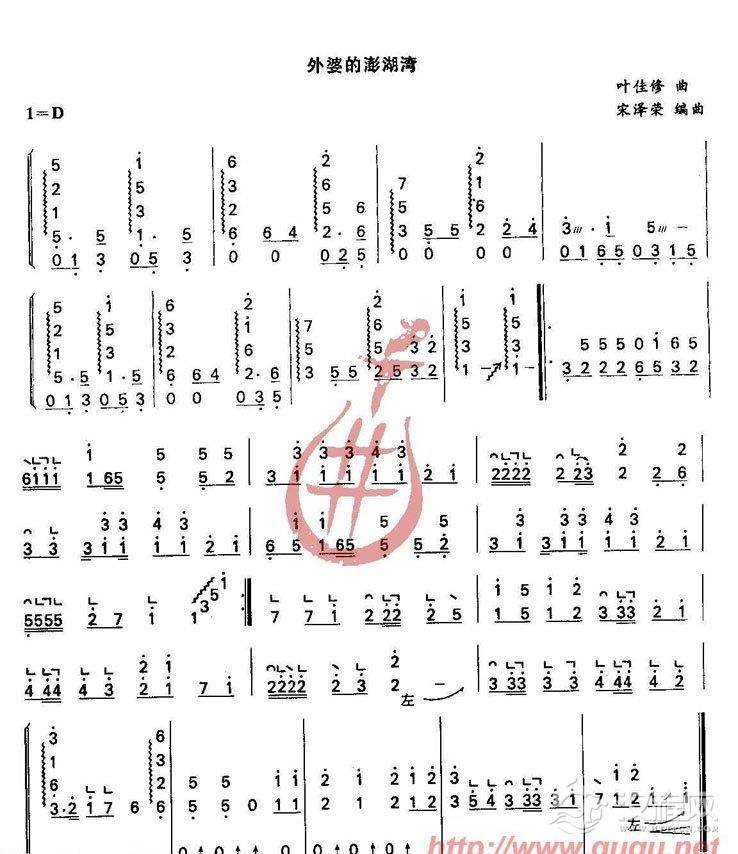 古筝曲谱【外婆的澎湖湾】