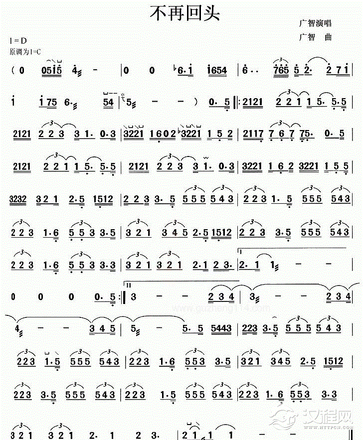 古筝谱【不再回头】