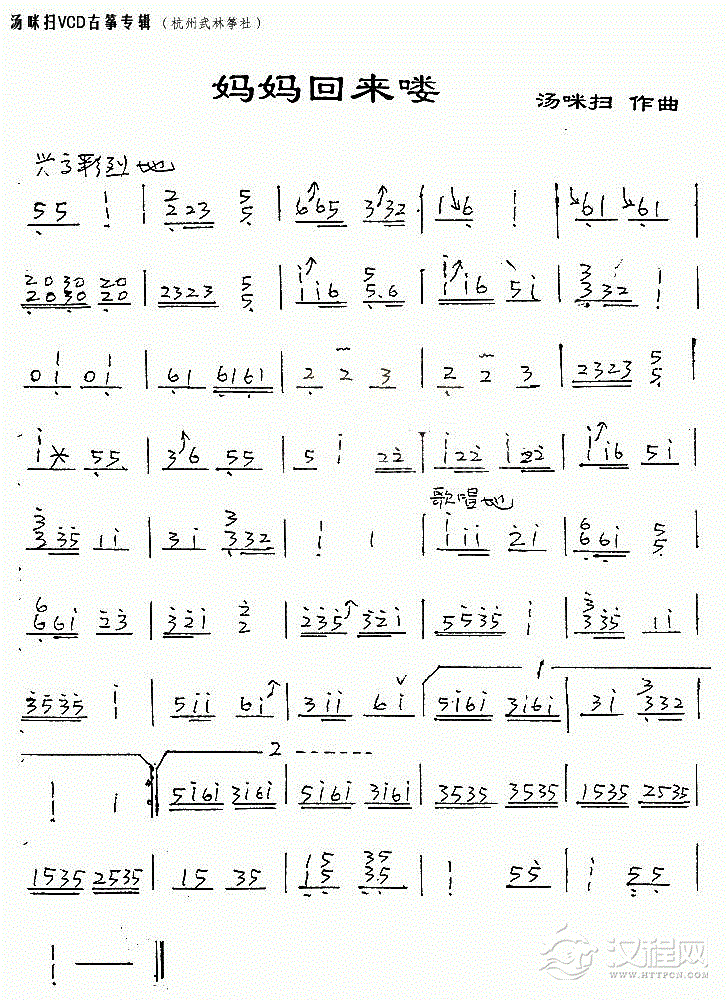 曲谱大全古筝谱【听妈妈讲那过去的事情】
