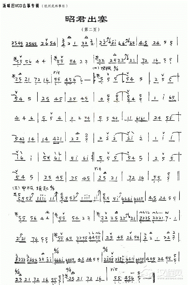 古筝谱《彩云追月》